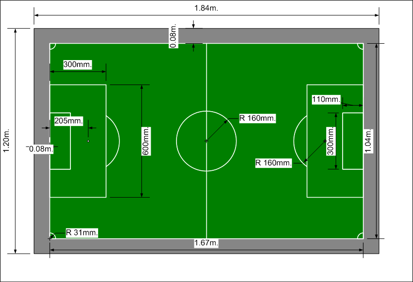 Auf dem Original grünen „Subbuteo Sport-Tischfußball Spielfeld“ [M 1:100] sind alle Spielfiguren frei beweglich, wodurch ein taktisch richtiger Fußball am Tisch, mit offensiver und defensiver Spielweise gespielt werden kann. Anstoß, Abstoß, Freistoß, Penalty, Eckball, Einwurf und Volley können durchgeführt werden. Der menschliche Spieler kann seine ‚Fußball‘ Taktik anwenden und naturgetreu im Spiel mit den 11 Spielfiguren umsetzen.