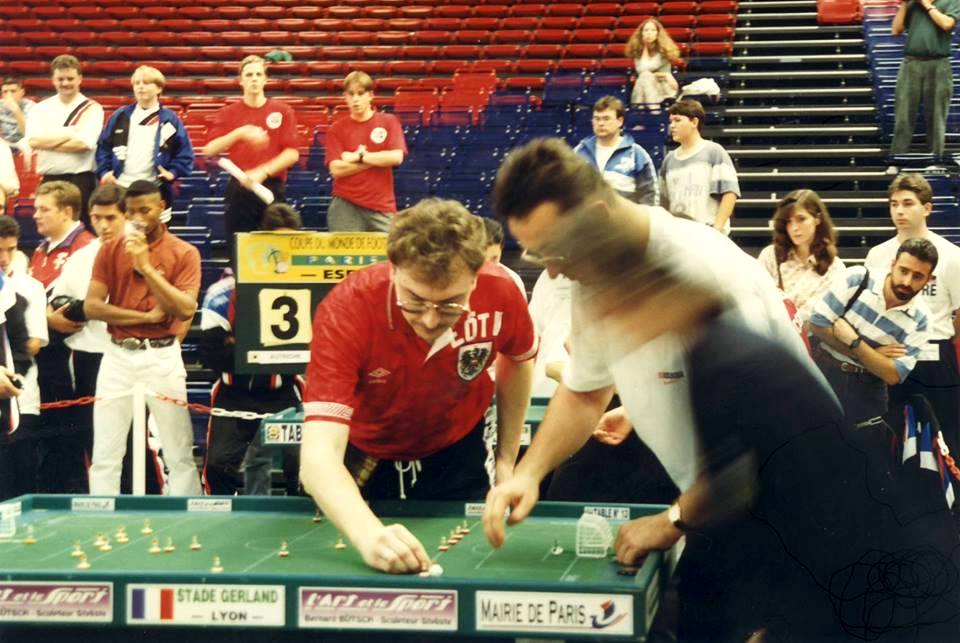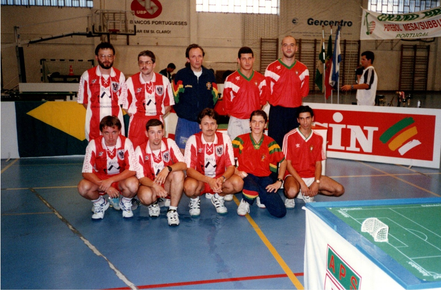 Foto oben: Einer der größten Siege durch Horst Deimel bei der WM 1994 mit einem 3-2 Sieg gegen  Christoph Fuseau (Frankreich) der damals die  Weltrangliste Nr. 1 war. Österreich besiegte Frankreich im Viertelfinale 3-1 und musste ein herzzerbrechendes Resultat gegen Portugal im Semifinale hinnehmen. Bronze am Ende.