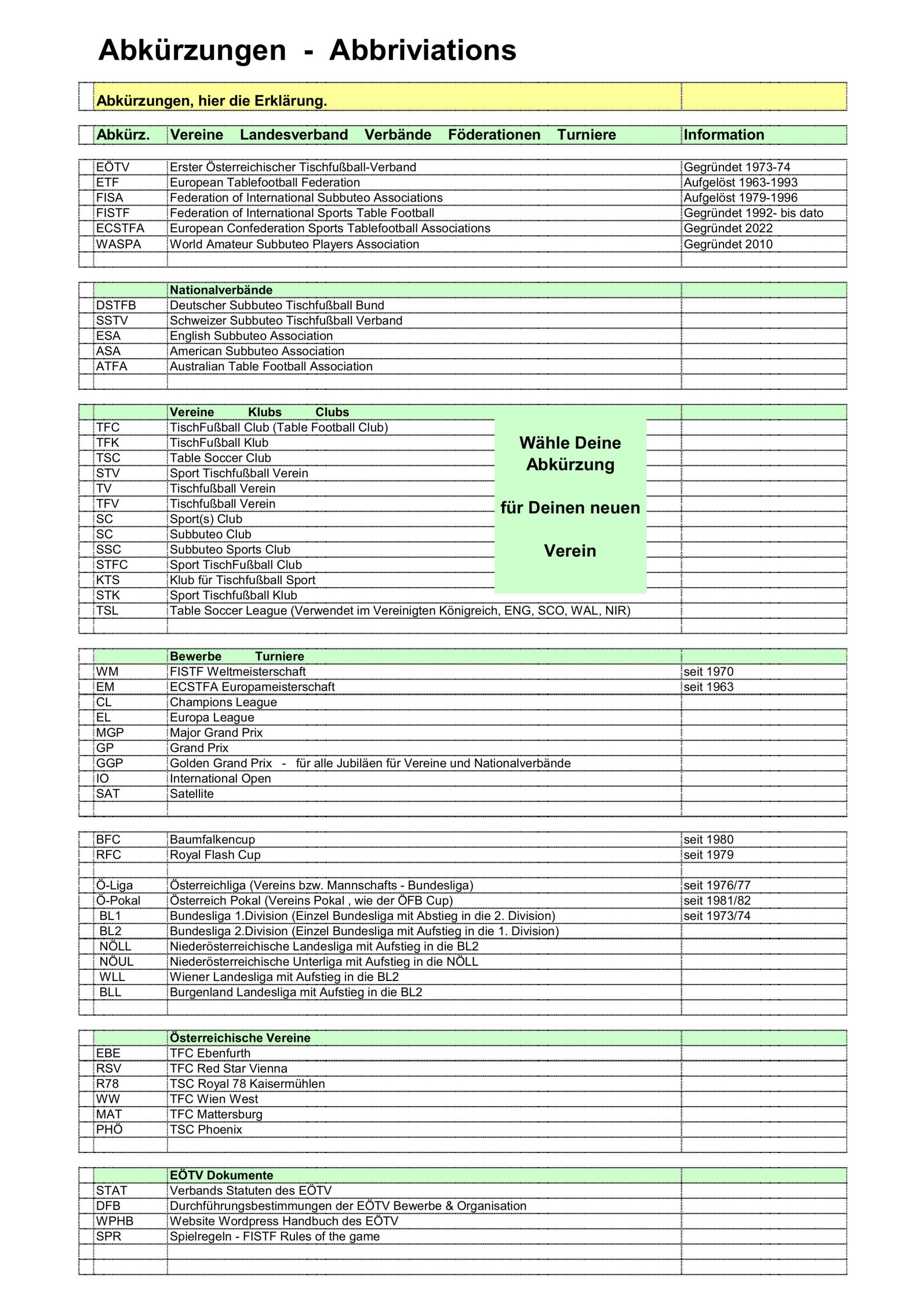 Ziel des EÖTV ist, dass wir jedem Interessenten, der sich für Sport-Tischfußball interessiert, Informationen (Wissen) zur Verfügung zu stellen, sodass einzelne Vereine entstehen können und Eltern und ihre geliebten Kinder Spaß haben.