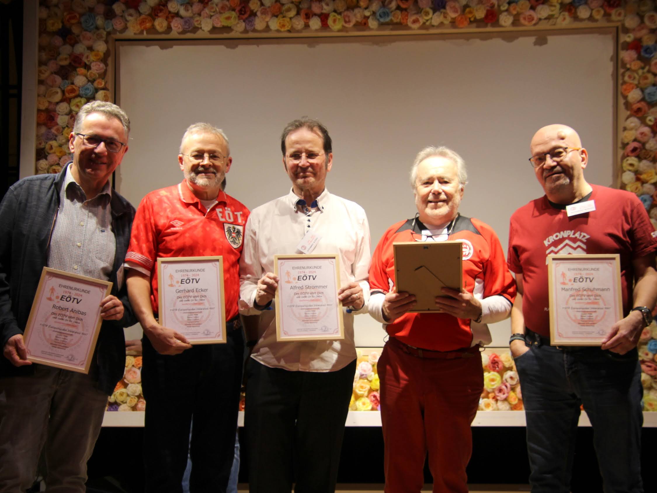 Von 1973 bis 2024 waren Spielergenerationen angereist, um gemeinsam zu Feiern und sich Feiern zu lassen. Viele haben sich durch Ihre sportlichen und organisatorischen Leistungen eine Ehrenurkunde verdient. Die Präsidenten erhielten die Ehrenmitgliedschaft überreicht und es war ein durchaus gelungener Abend, der durch EÖTV Präsident Heinz Eder hervorragend präsentiert wurde.