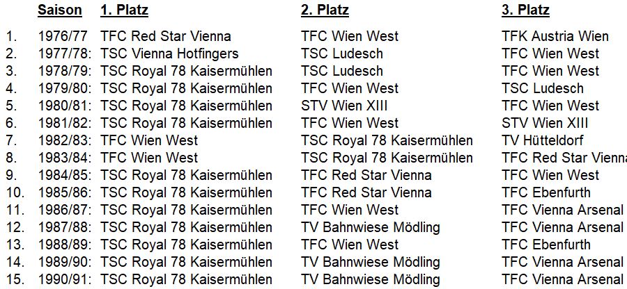 Die Österreichliga, dass Aushängeschild des EÖTV war das Kriterium um sich für den Europa-Pokal der Klubmannschaften zu qualifizieren. Später wurde der Europa-Pokal geteilt und die Champions- und Europa League aufgestellt.