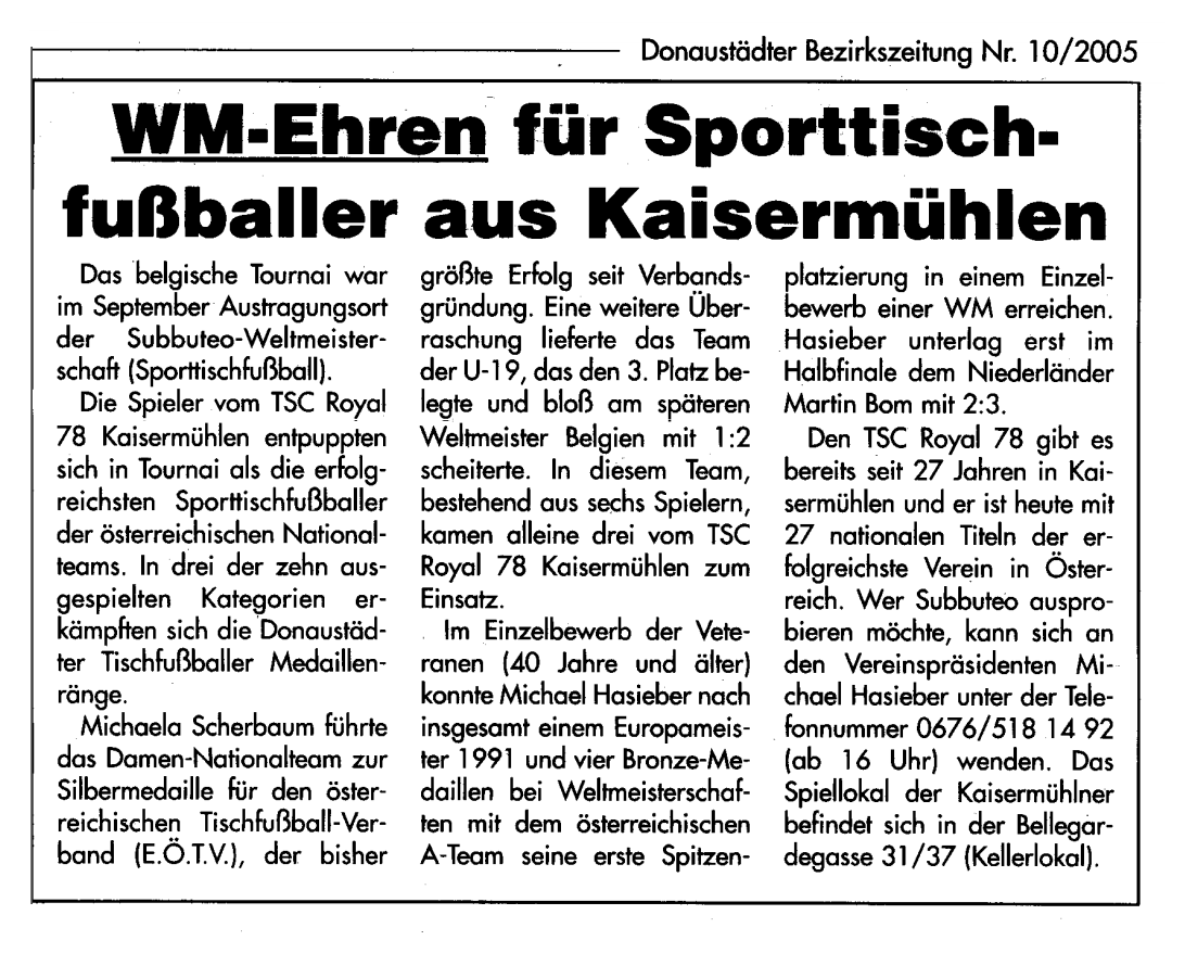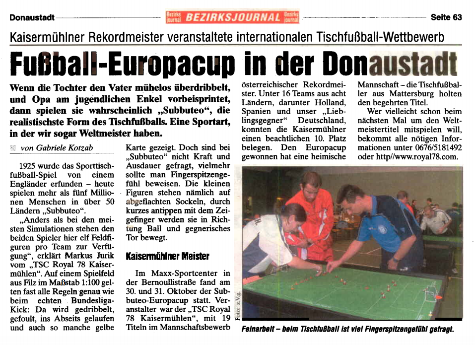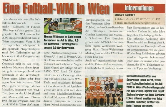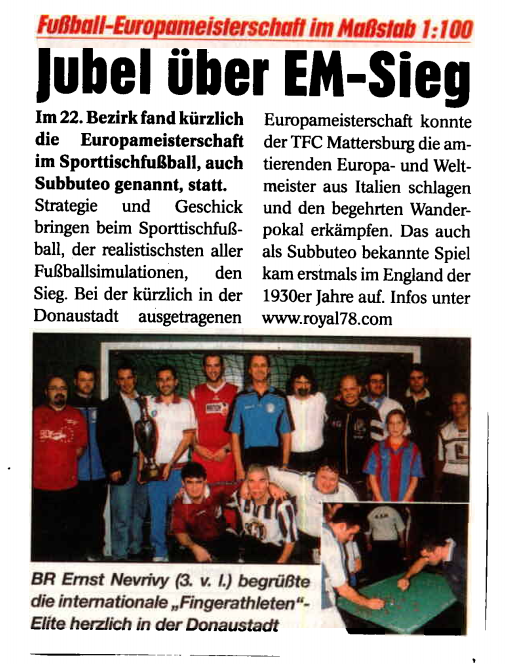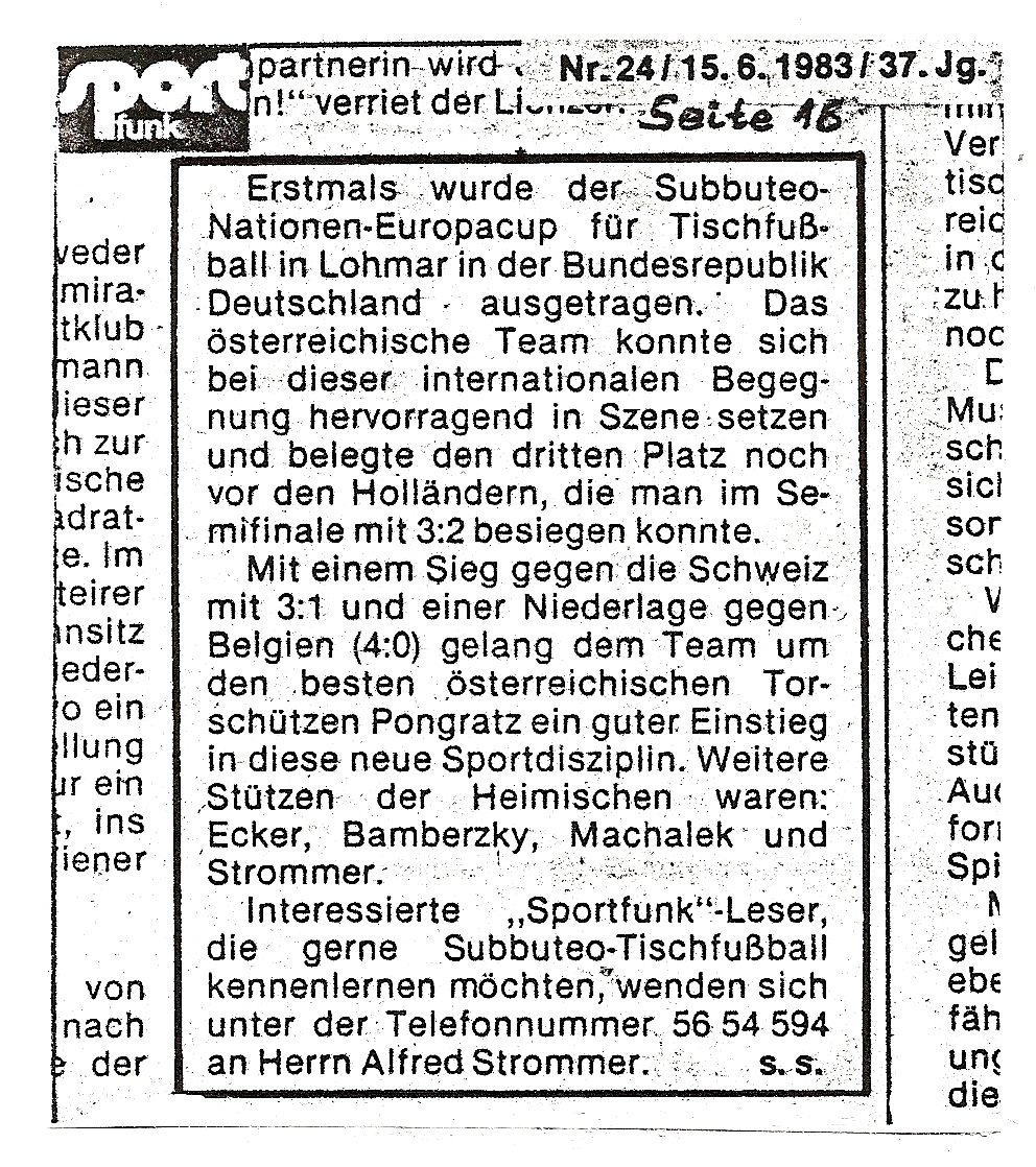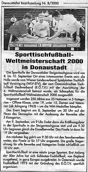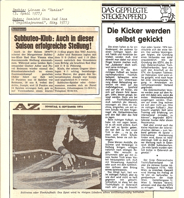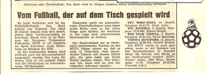 Die EÖTV Vereine kontaktieren immer wieder die österreichweiten Zeitungen und Lokalen Medien um Aufmerksamkeit zu erlangen, um unseren spannenden Sport-Tischfußball populärer in den Medien den Leser und dem Publikum vorzustellen.