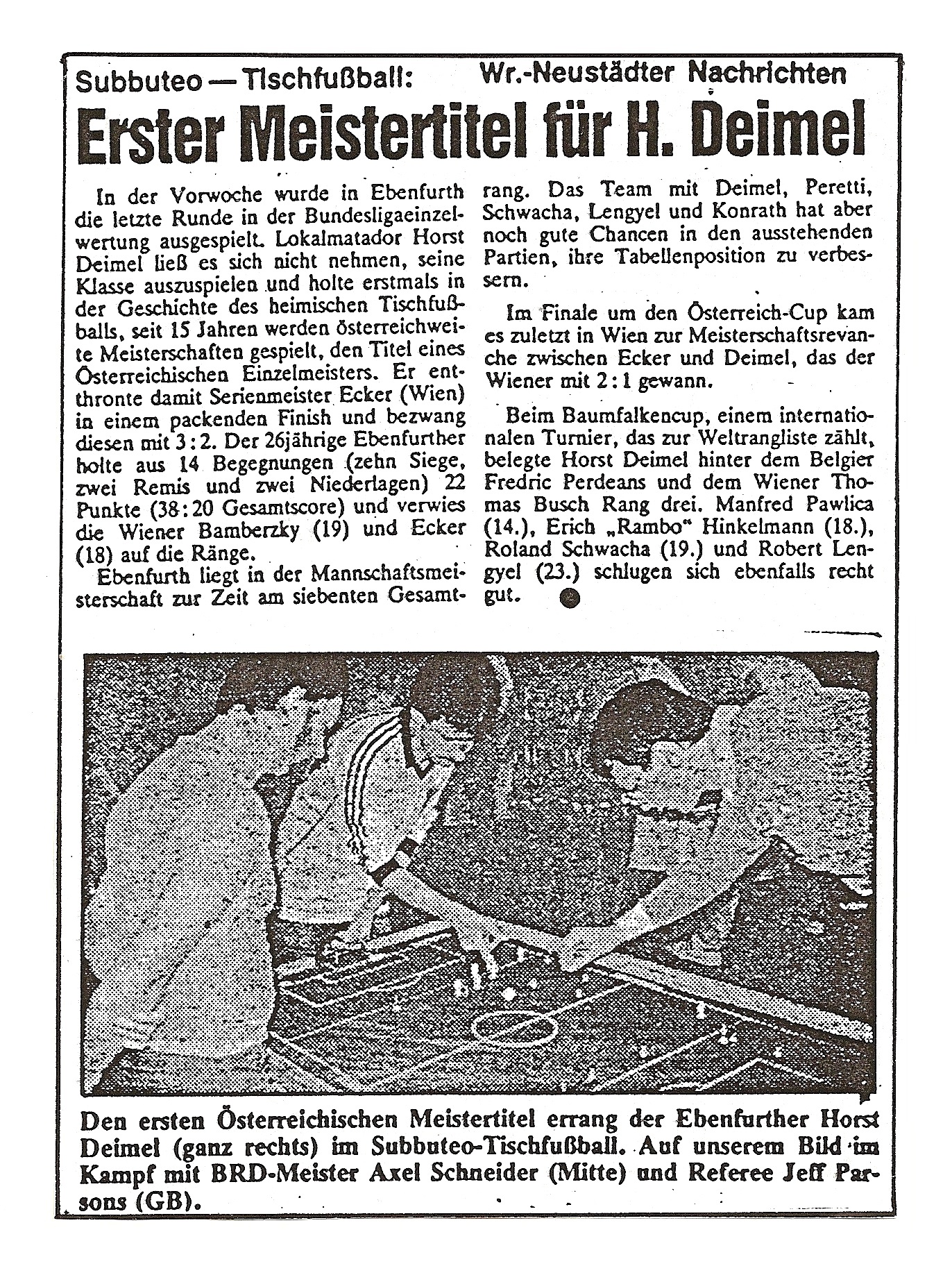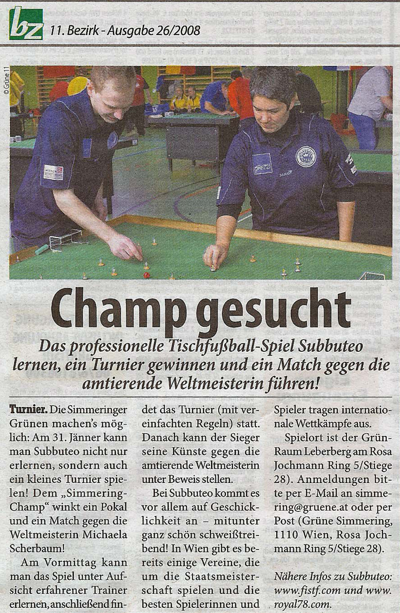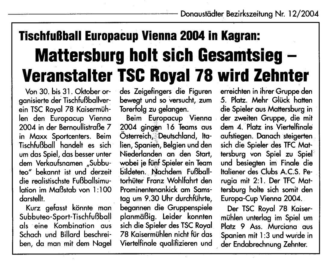Die EÖTV Vereine kontaktieren immer wieder die österreichweiten Zeitungen und Lokalen Medien um Aufmerksamkeit zu erlangen, um unseren spannenden Sport-Tischfußball populärer in den Medien den Leser und dem Publikum vorzustellen.