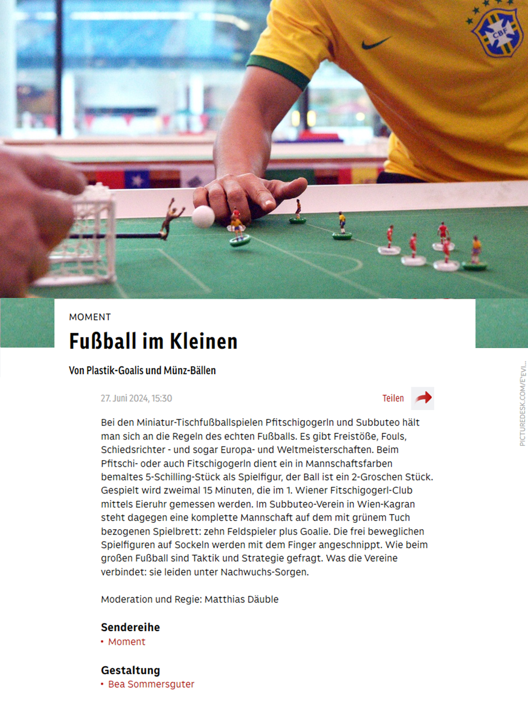 Medien und Sport-Tischfußball (aka Subbuteo), daß ist unsere eigene Geschichte.