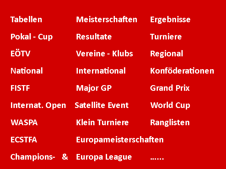 Ergebnisse/Resultate beim EÖTV, FISTF, WASPA für Ranglisten einreichen/senden.