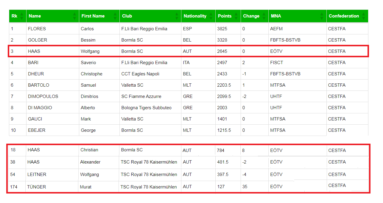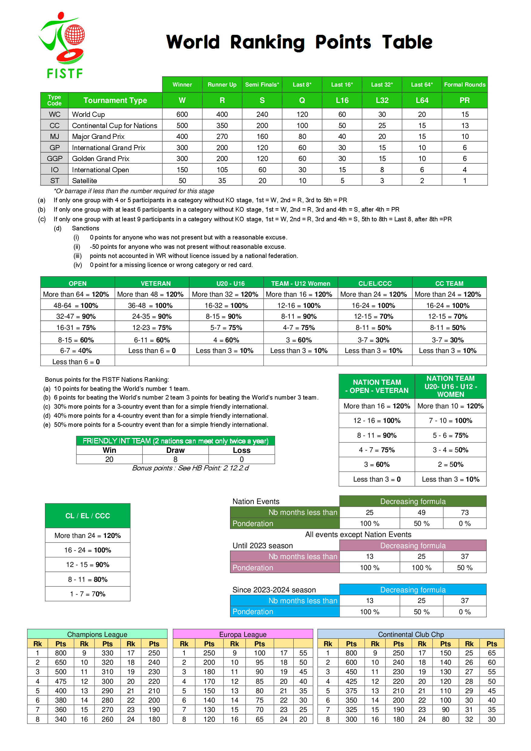 Bitte nutzt den direkten Link zu den FISTF Ranglisten aller Kategorien.