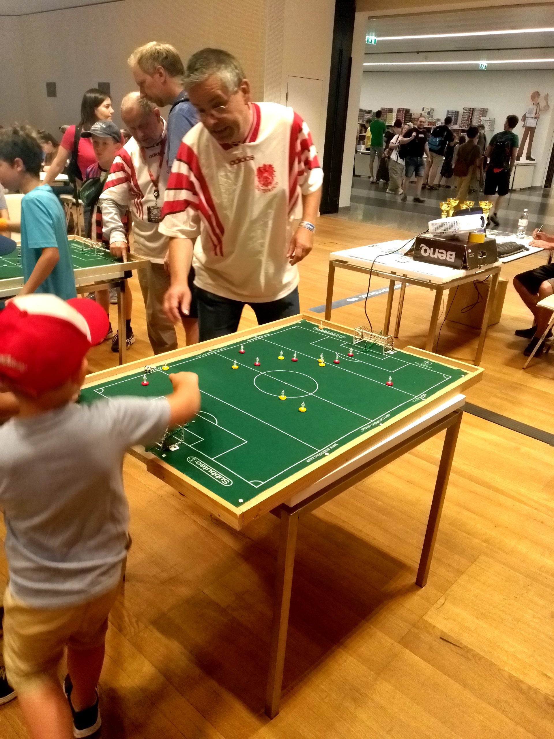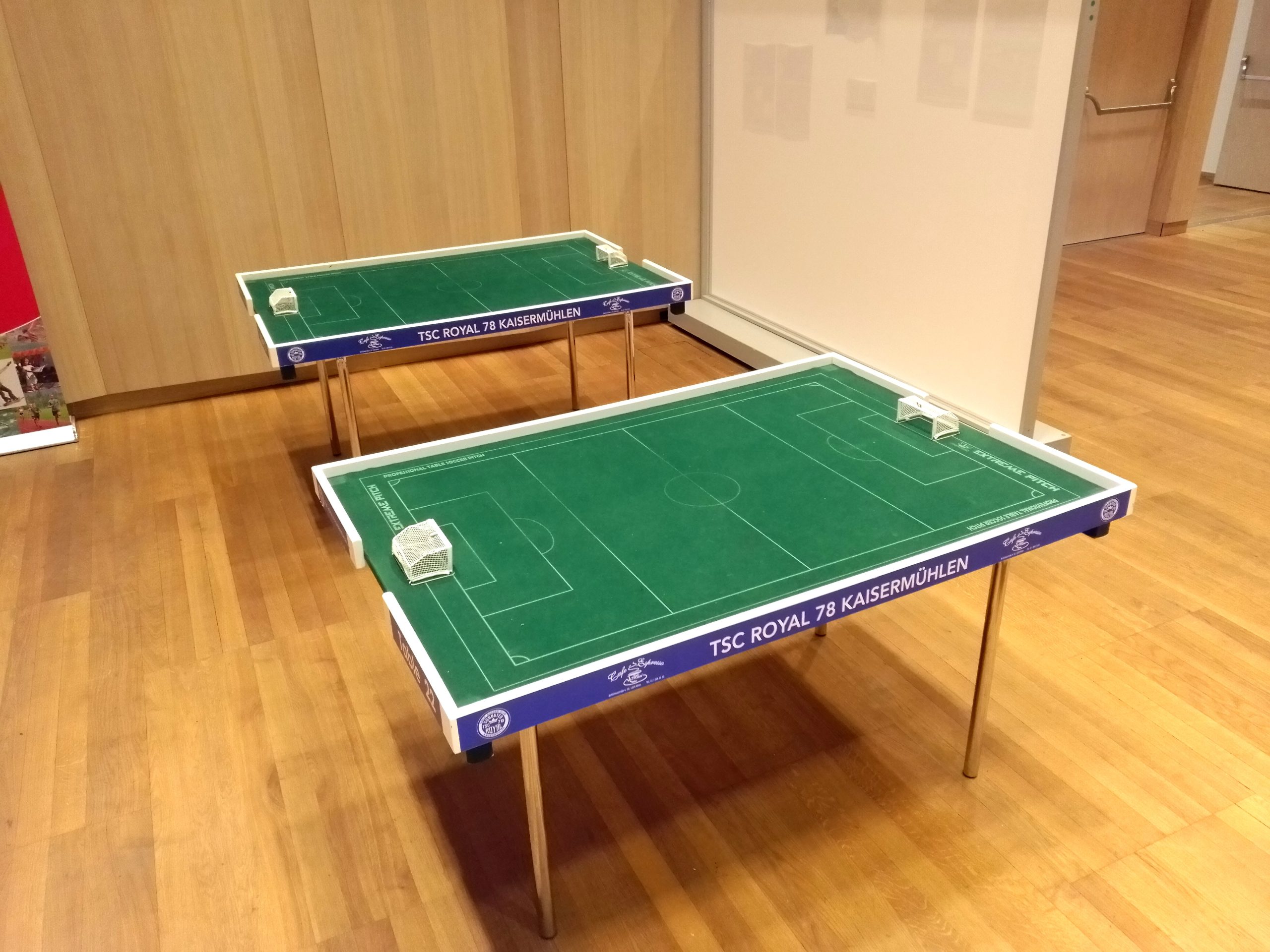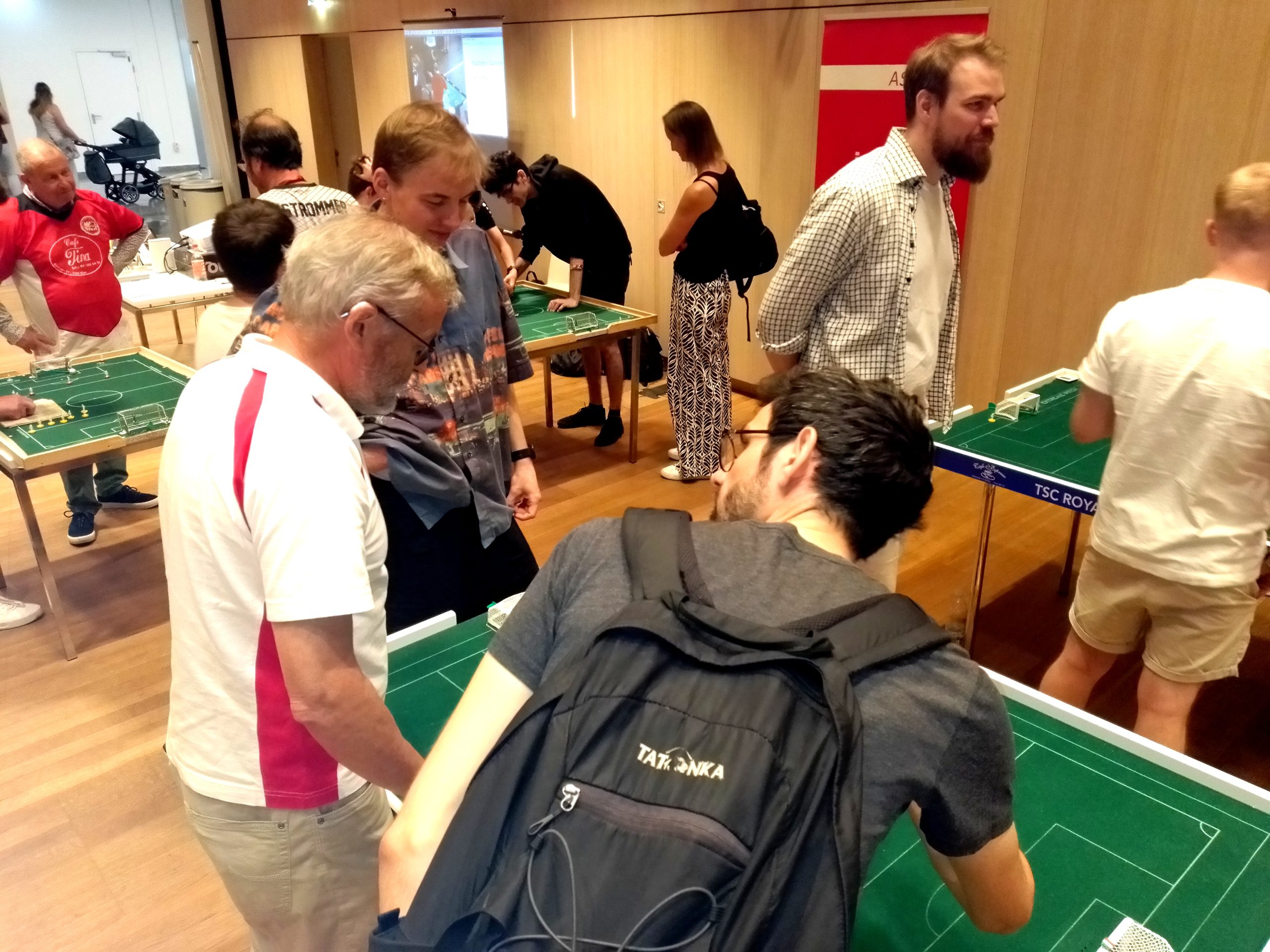 Sportsfreunde die sehr gerne Sporttischfußball (aka Subbuteo) spielen.