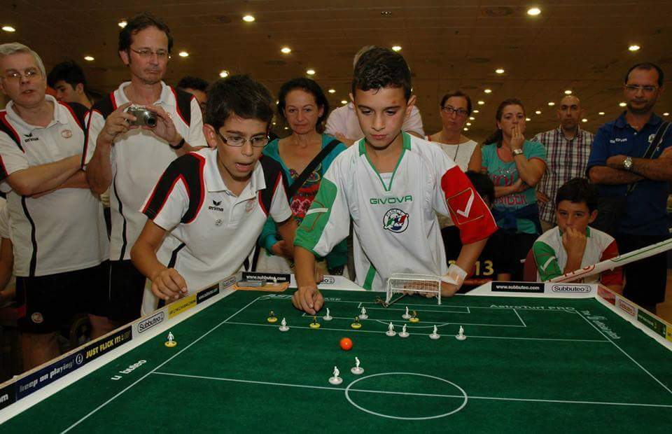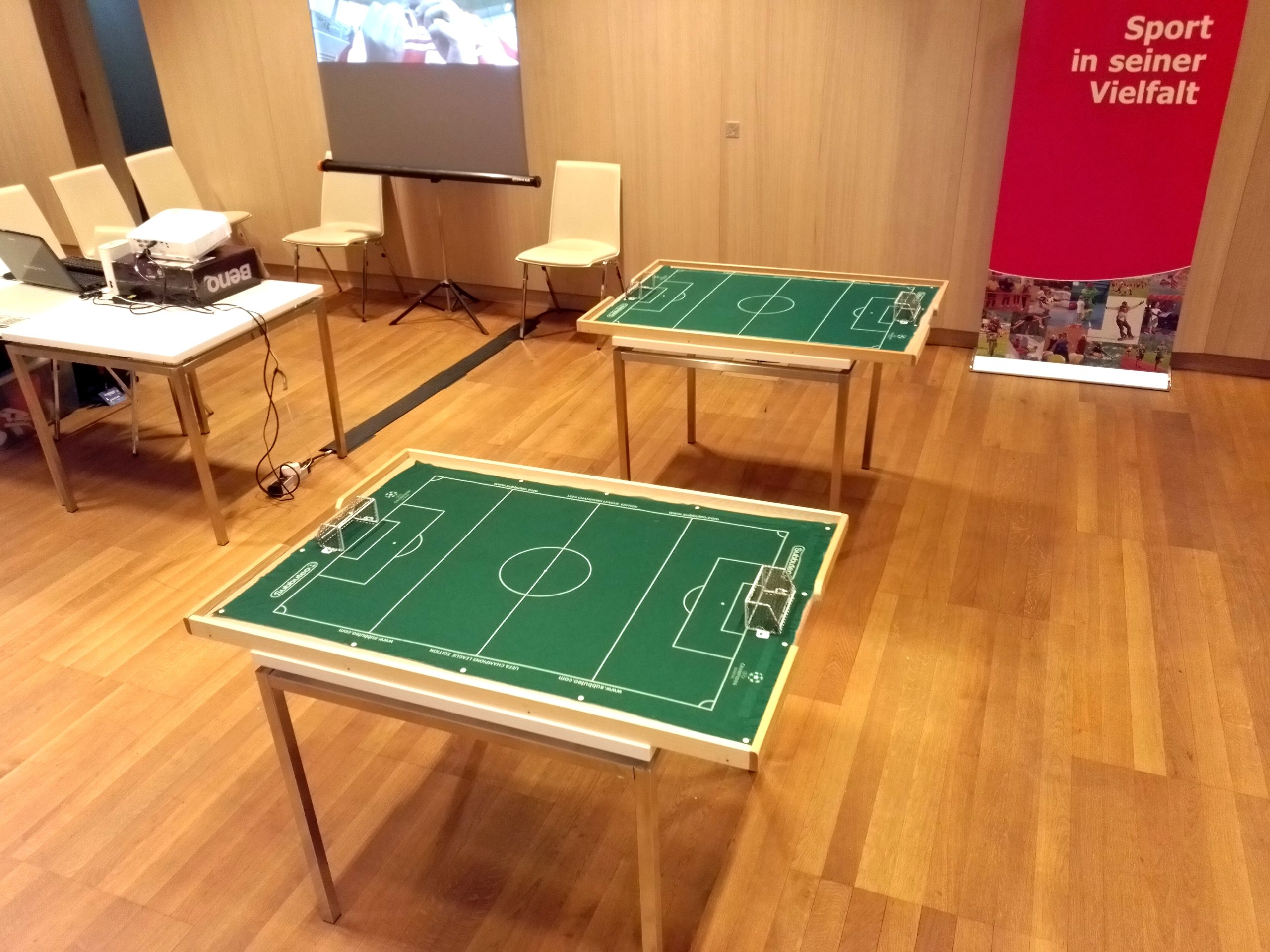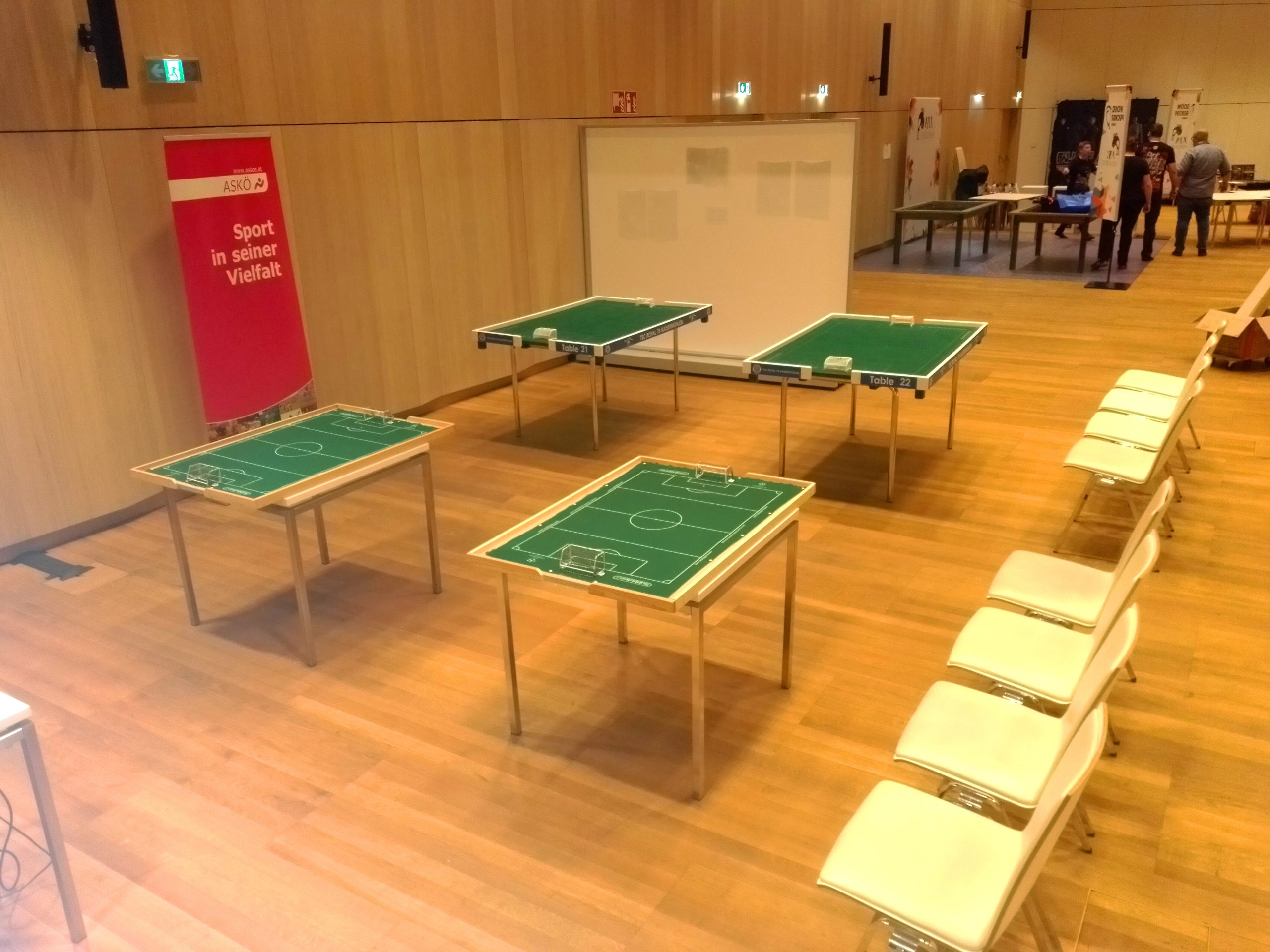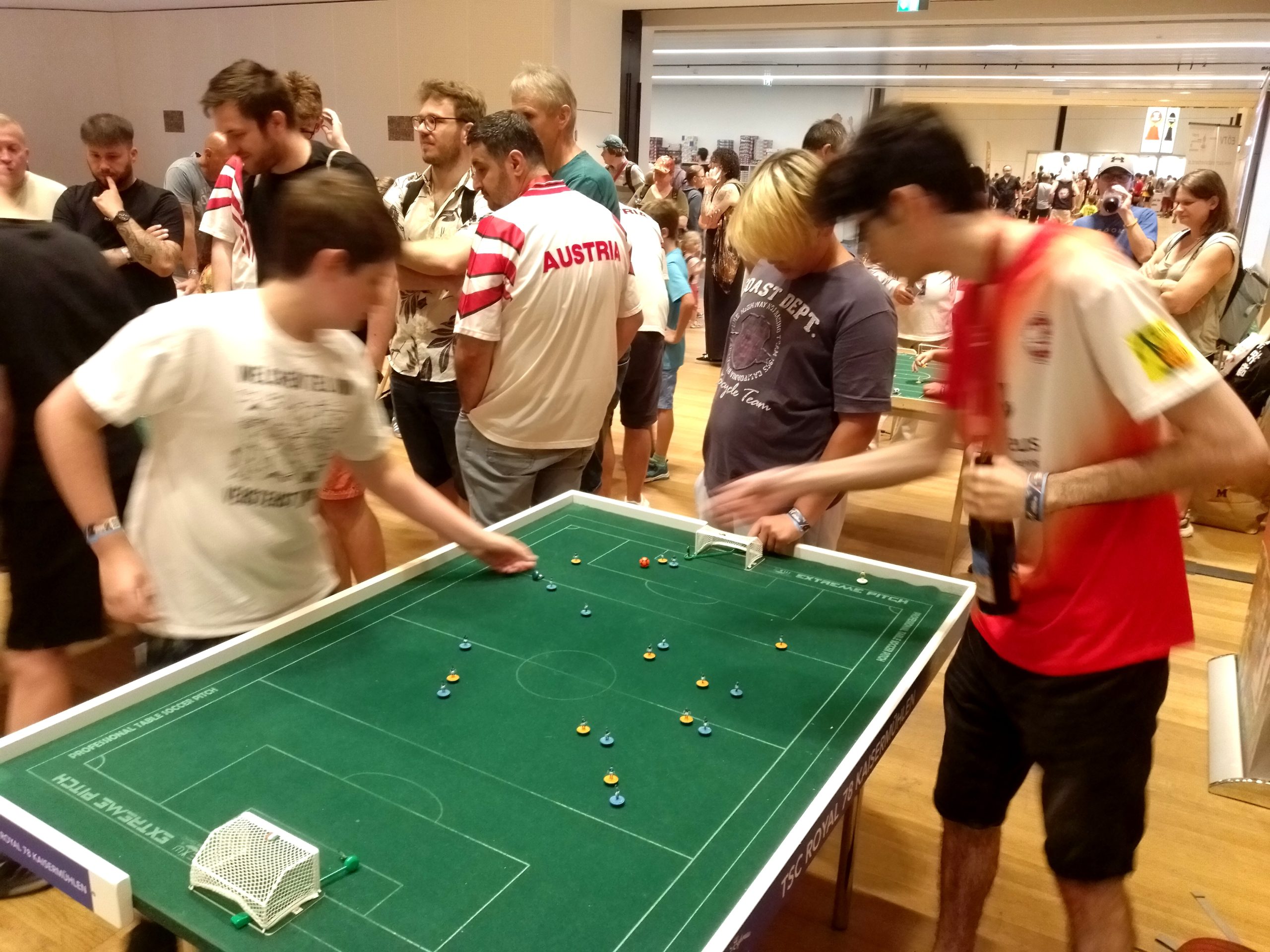 Sportsfreunde die sehr gerne Sporttischfußball (aka Subbuteo) spielen.