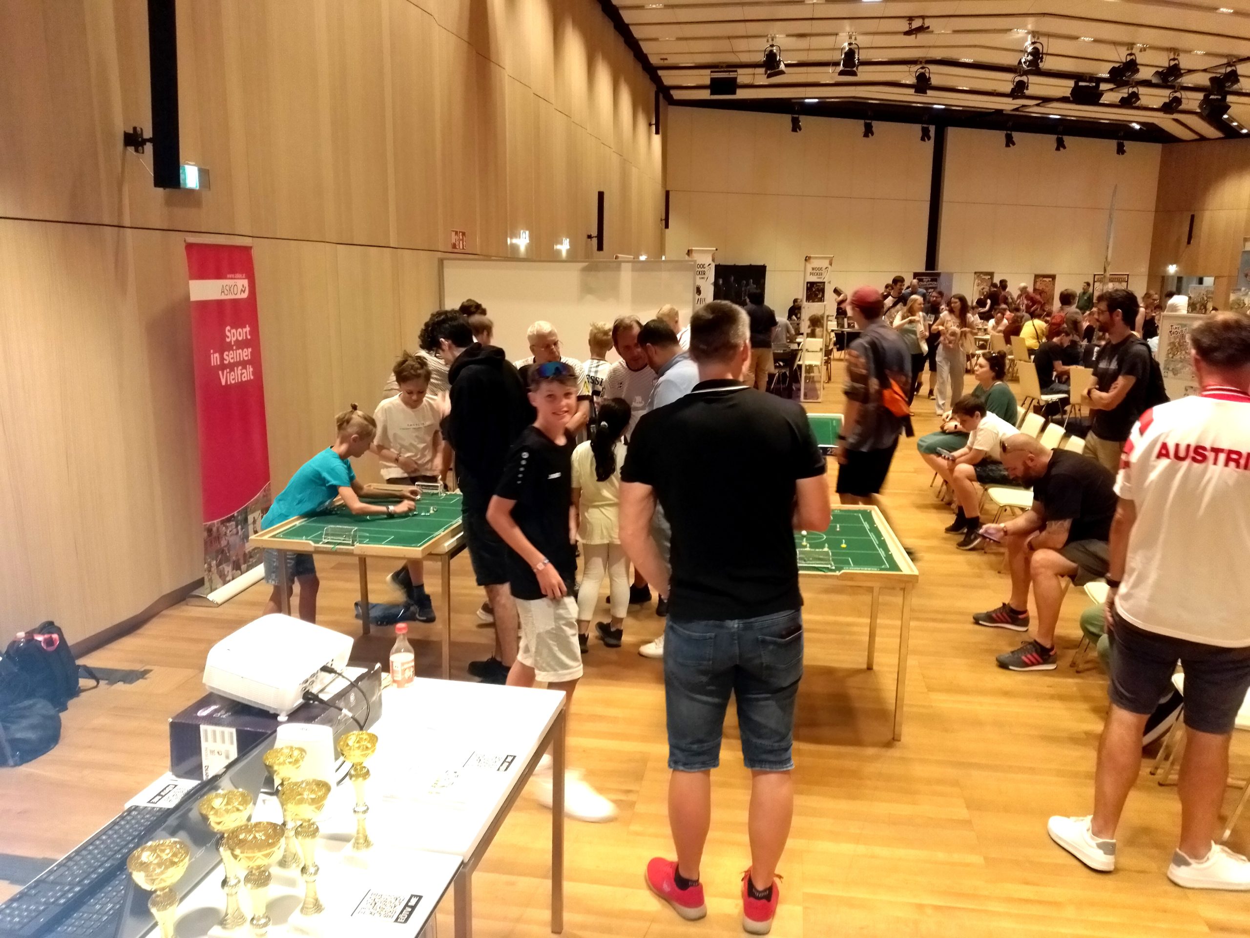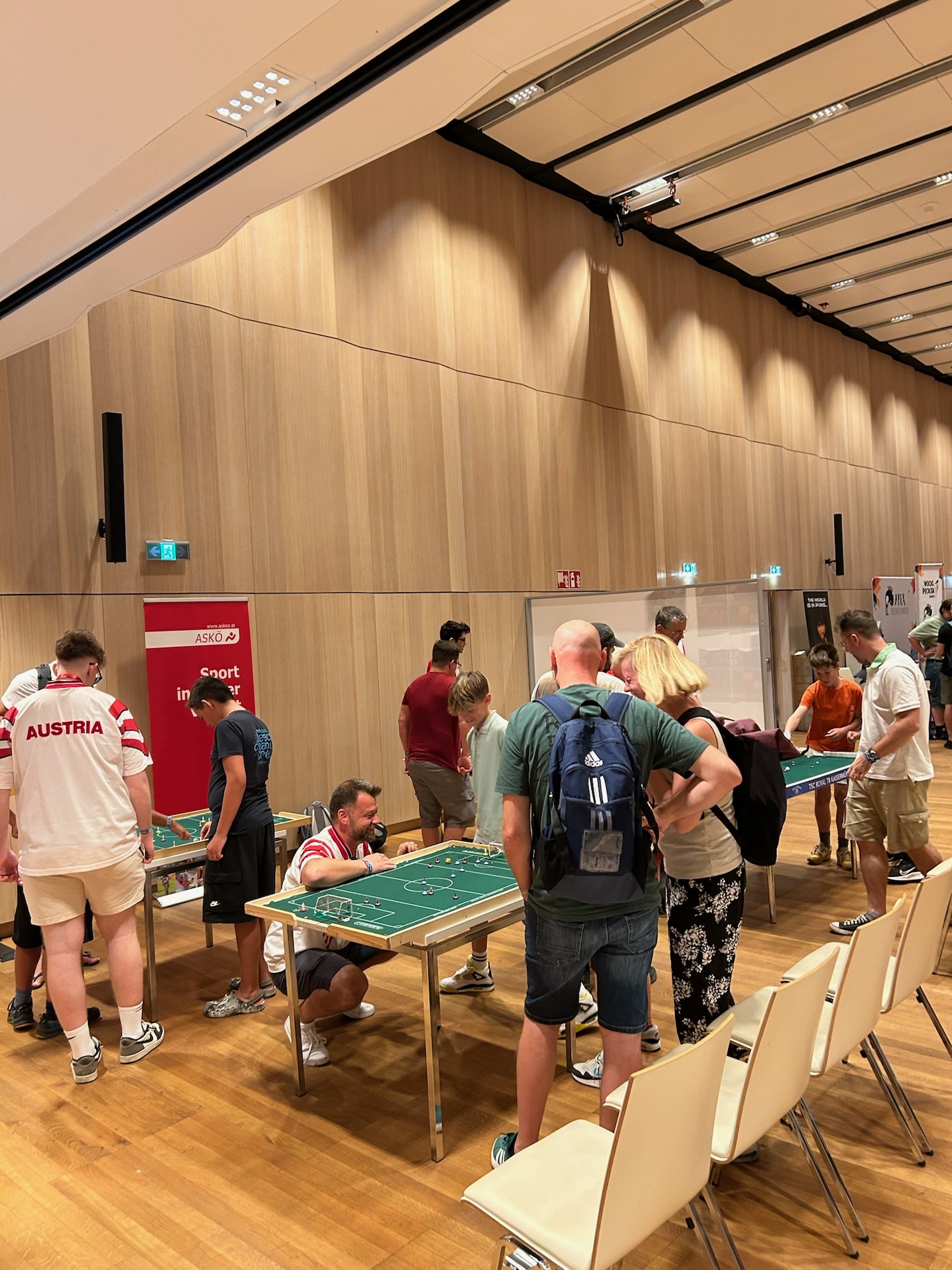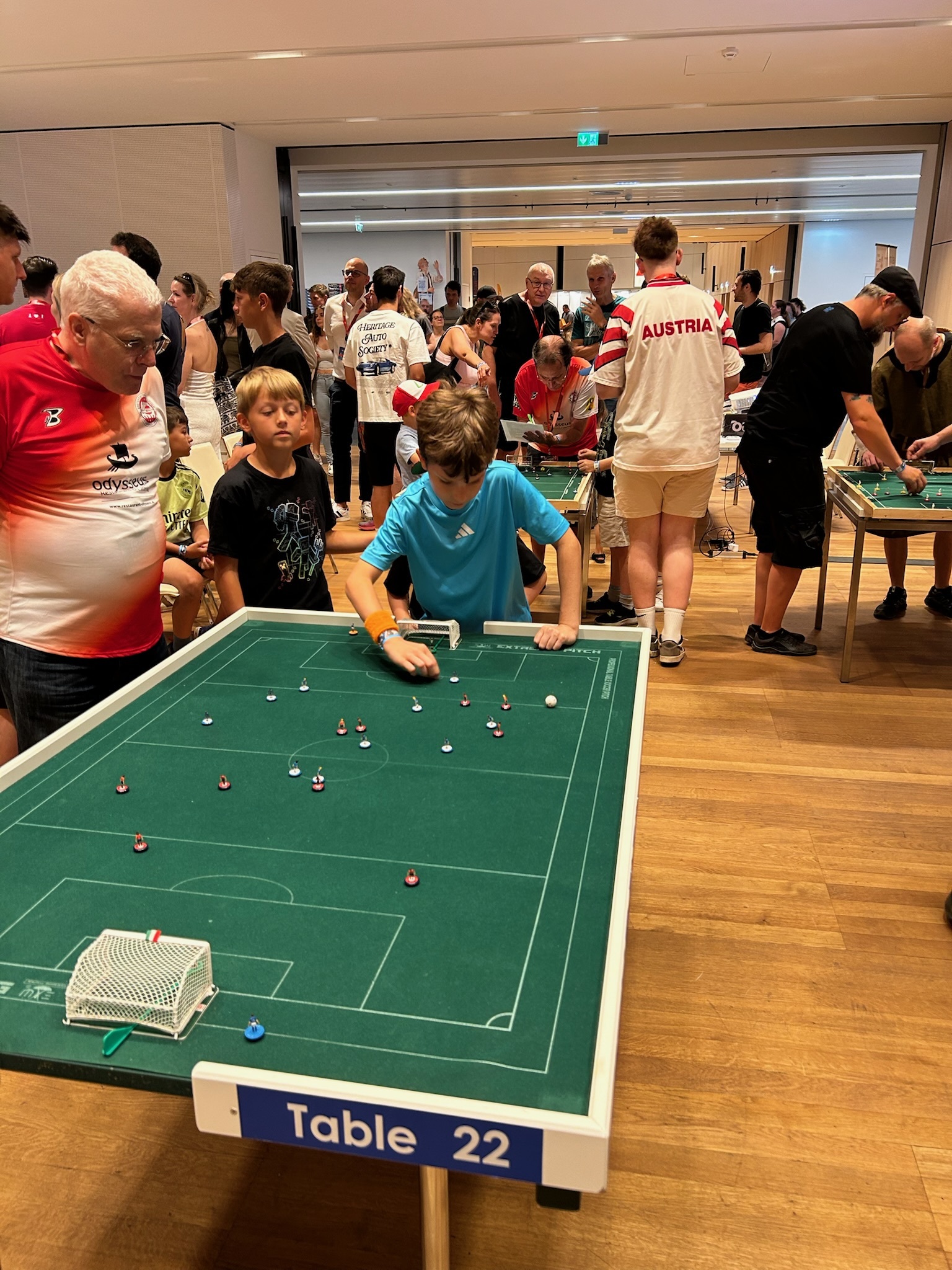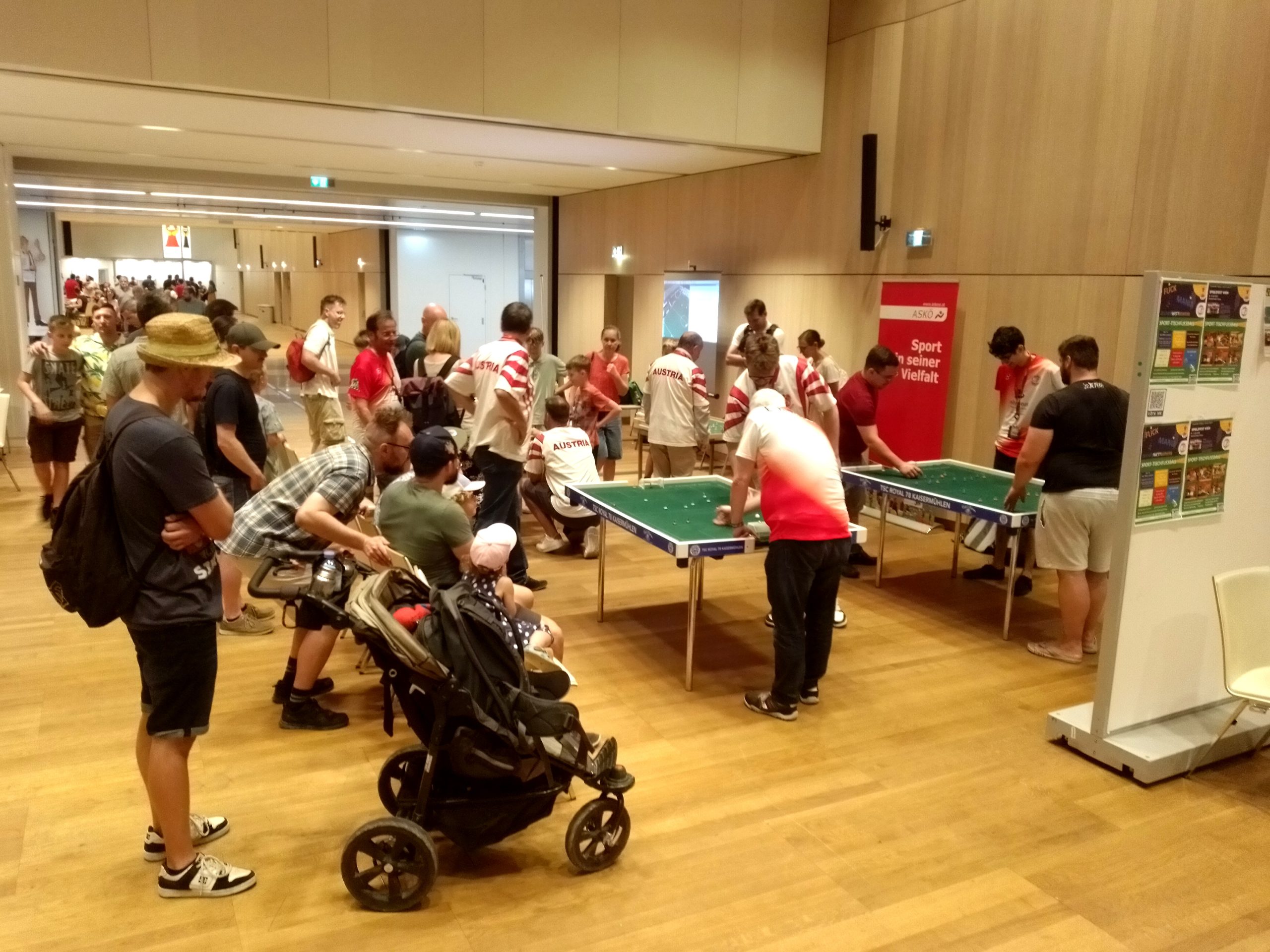 Trotz vieler Kiiiiiiiiids kann man getrost schreiben: „Kids love Sports Table Football“. (Übersetzung: Jugendliche lieben Sport-Tischfußball). Gerhard lachte amüsant als beim Essen ein Tisch umgeworfen wurde und die anderen 94 Jugendlichen sehr laut zum Klatschen begannen. Die Halle tobte, die Stimmung war exzellent, das Essen bestens und die Organisatoren rund um das Team von Markus Hirtl (Obmann SCUPF) hatten Geniales für die 95 Jugendlichen Vollbracht. Der EÖTV und seine Vereine gratulieren dazu herzlichst.