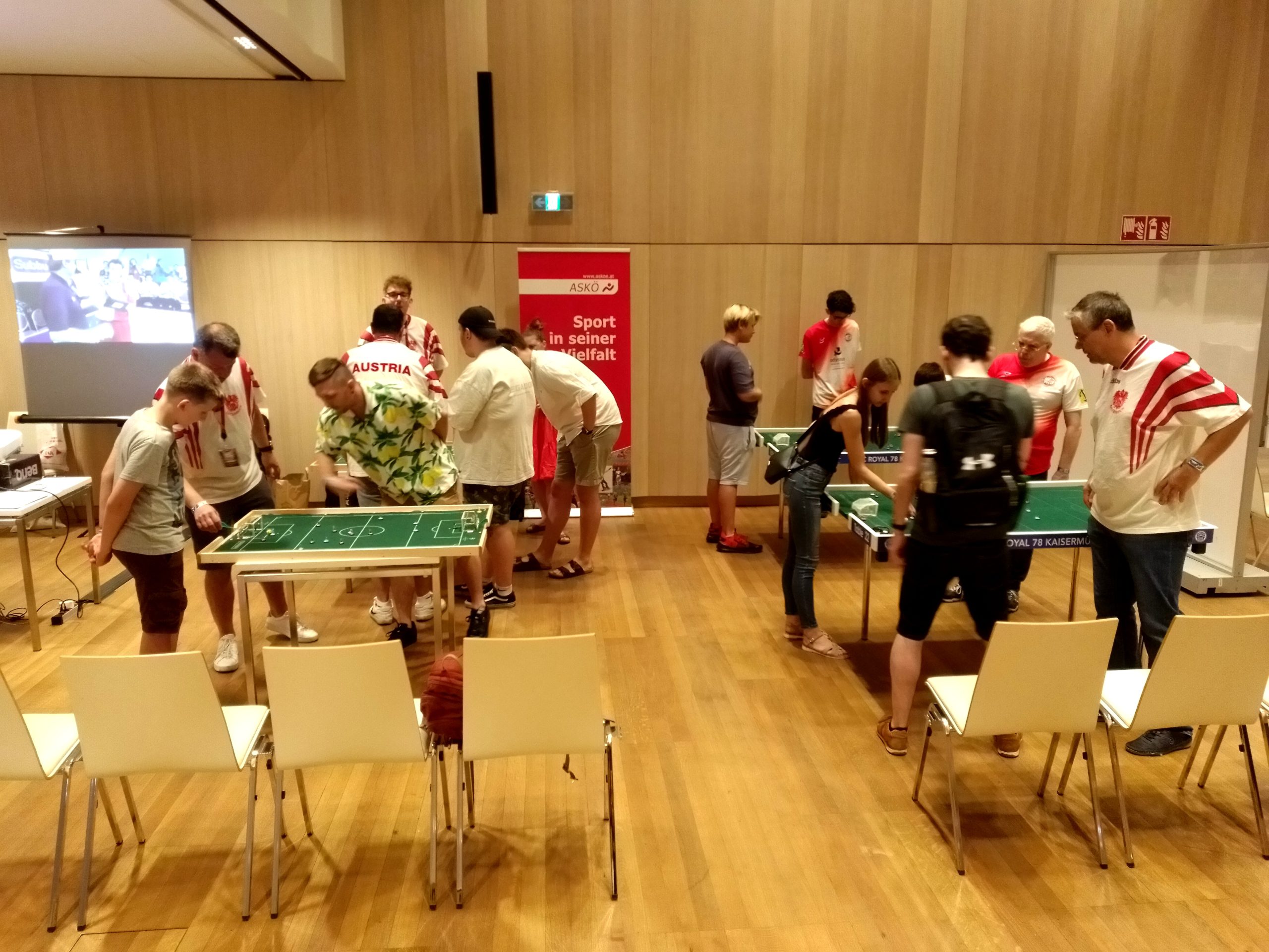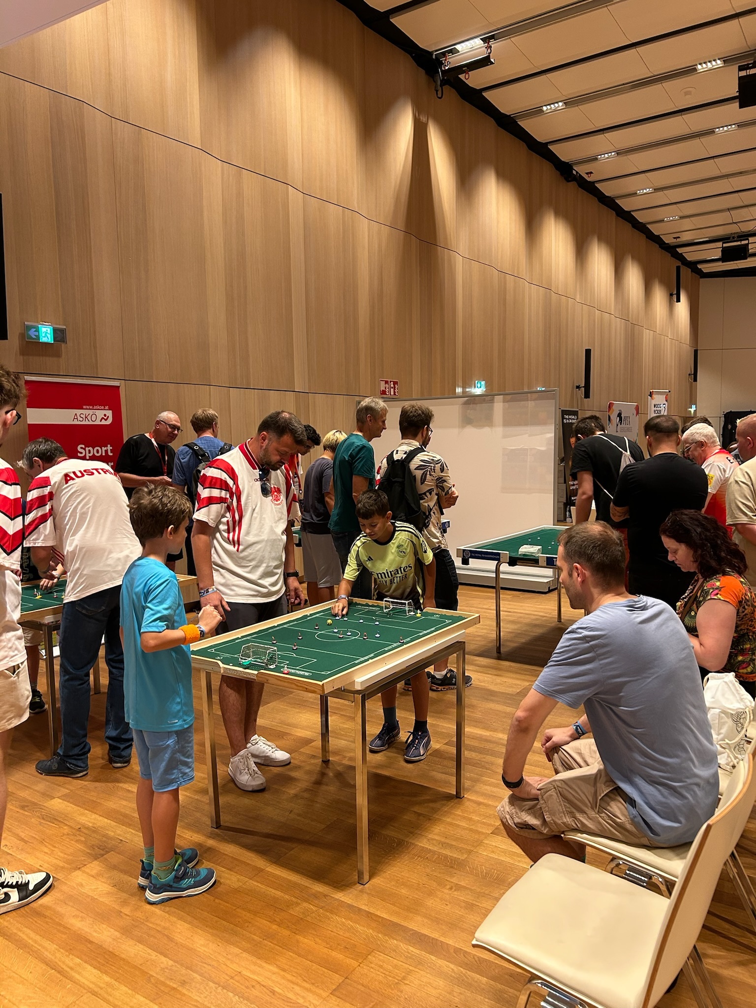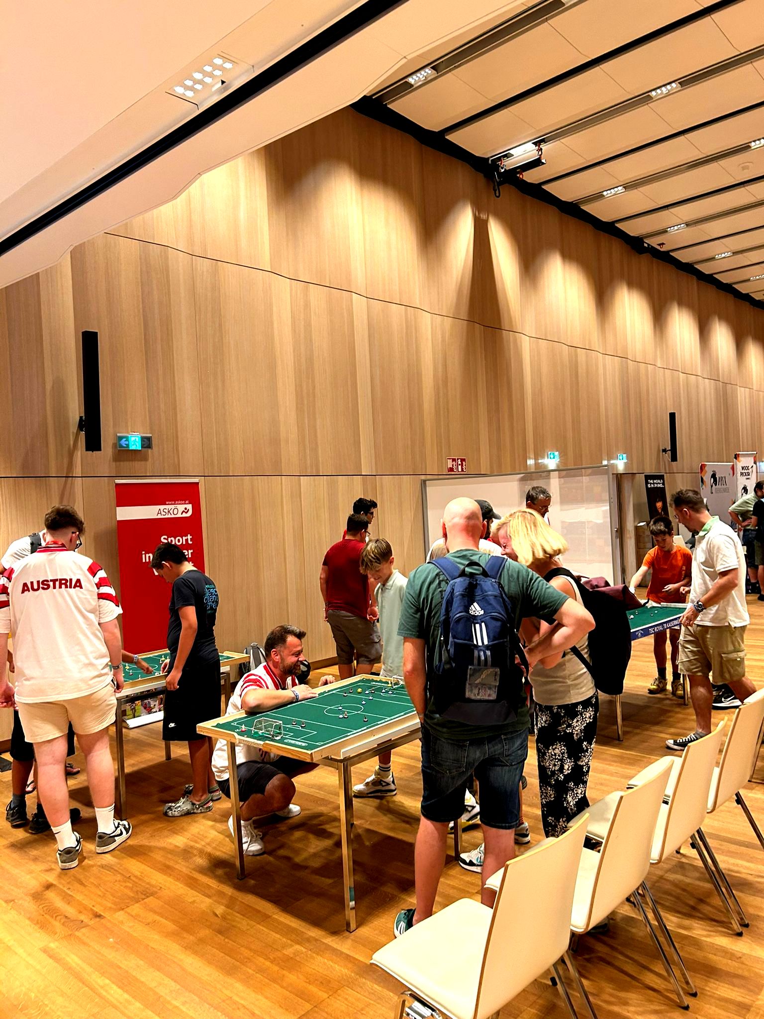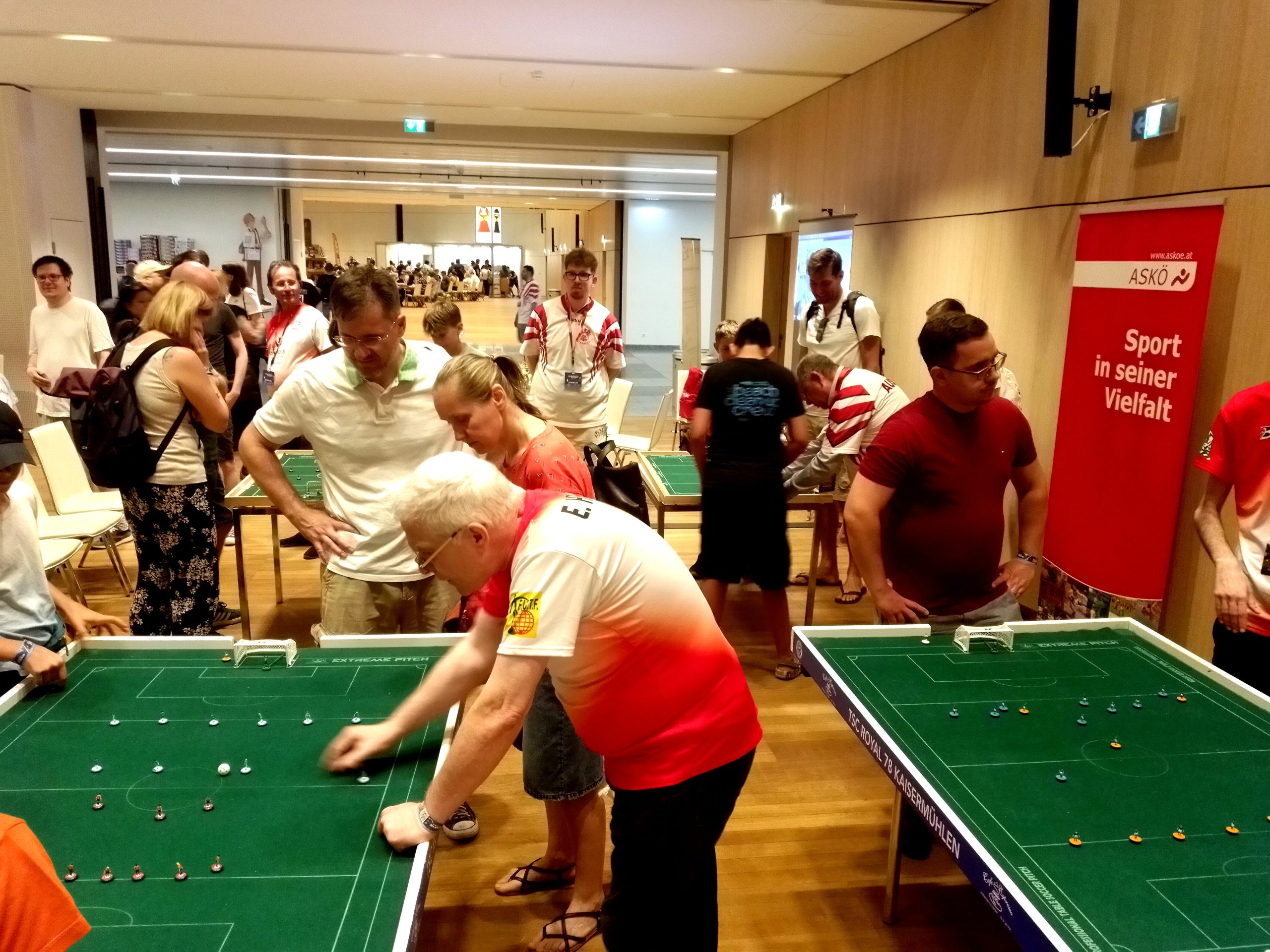 Trotz vieler Kiiiiiiiiids kann man getrost schreiben: „Kids love Sports Table Football“. (Übersetzung: Jugendliche lieben Sport-Tischfußball). Gerhard lachte amüsant als beim Essen ein Tisch umgeworfen wurde und die anderen 94 Jugendlichen sehr laut zum Klatschen begannen. Die Halle tobte, die Stimmung war exzellent, das Essen bestens und die Organisatoren rund um das Team von Markus Hirtl (Obmann SCUPF) hatten Geniales für die 95 Jugendlichen Vollbracht. Der EÖTV und seine Vereine gratulieren dazu herzlichst.