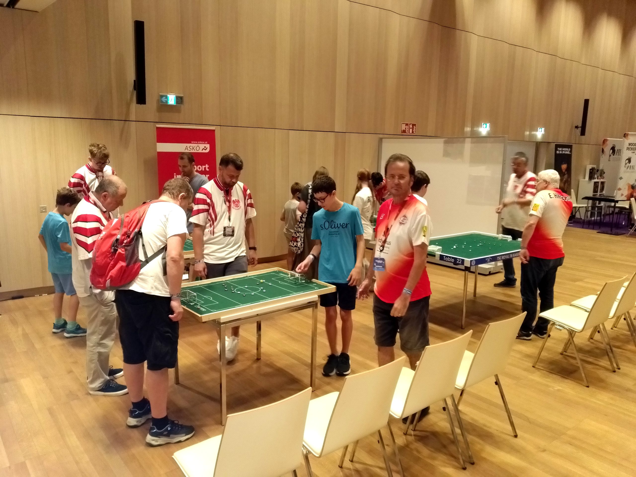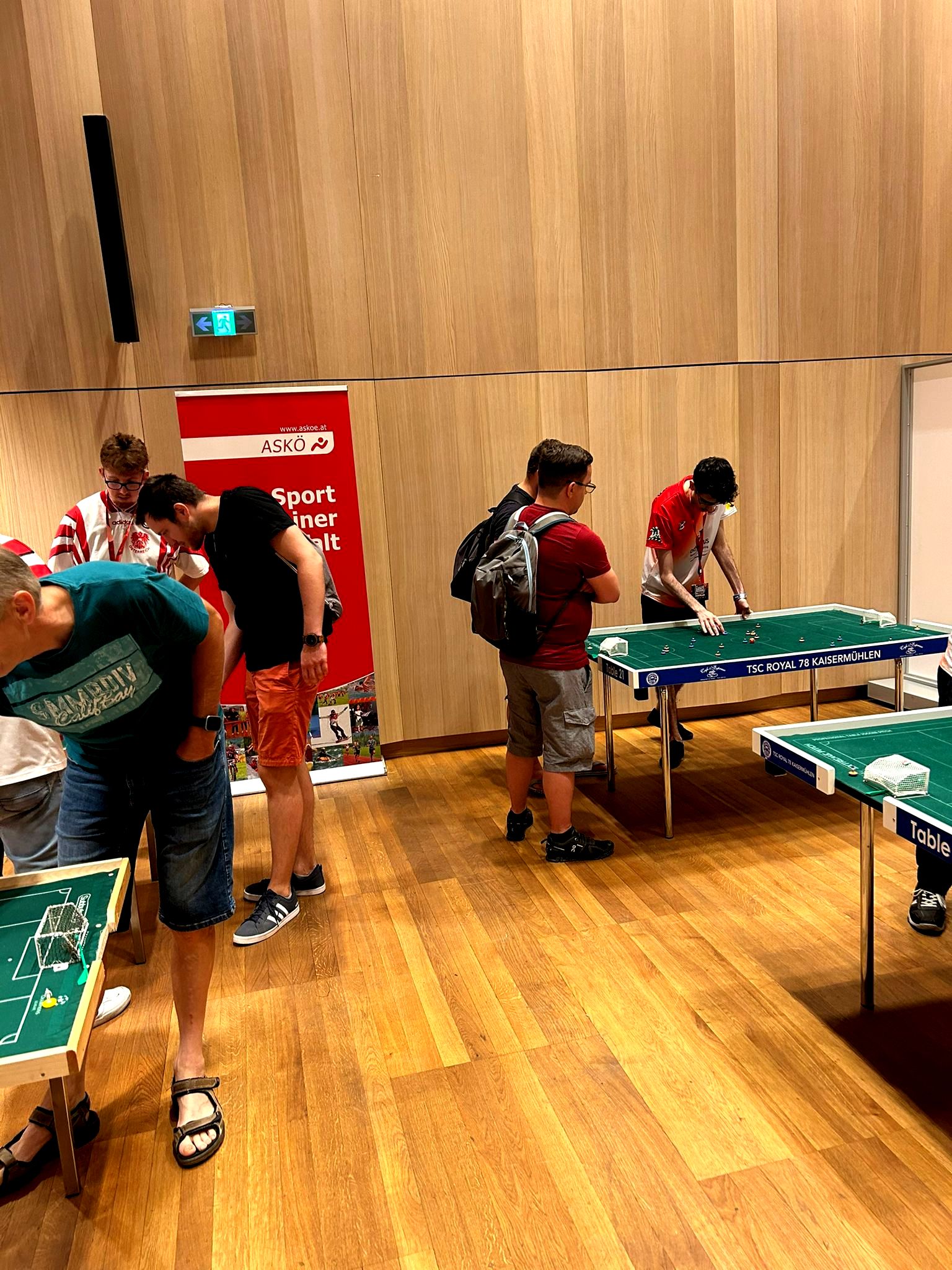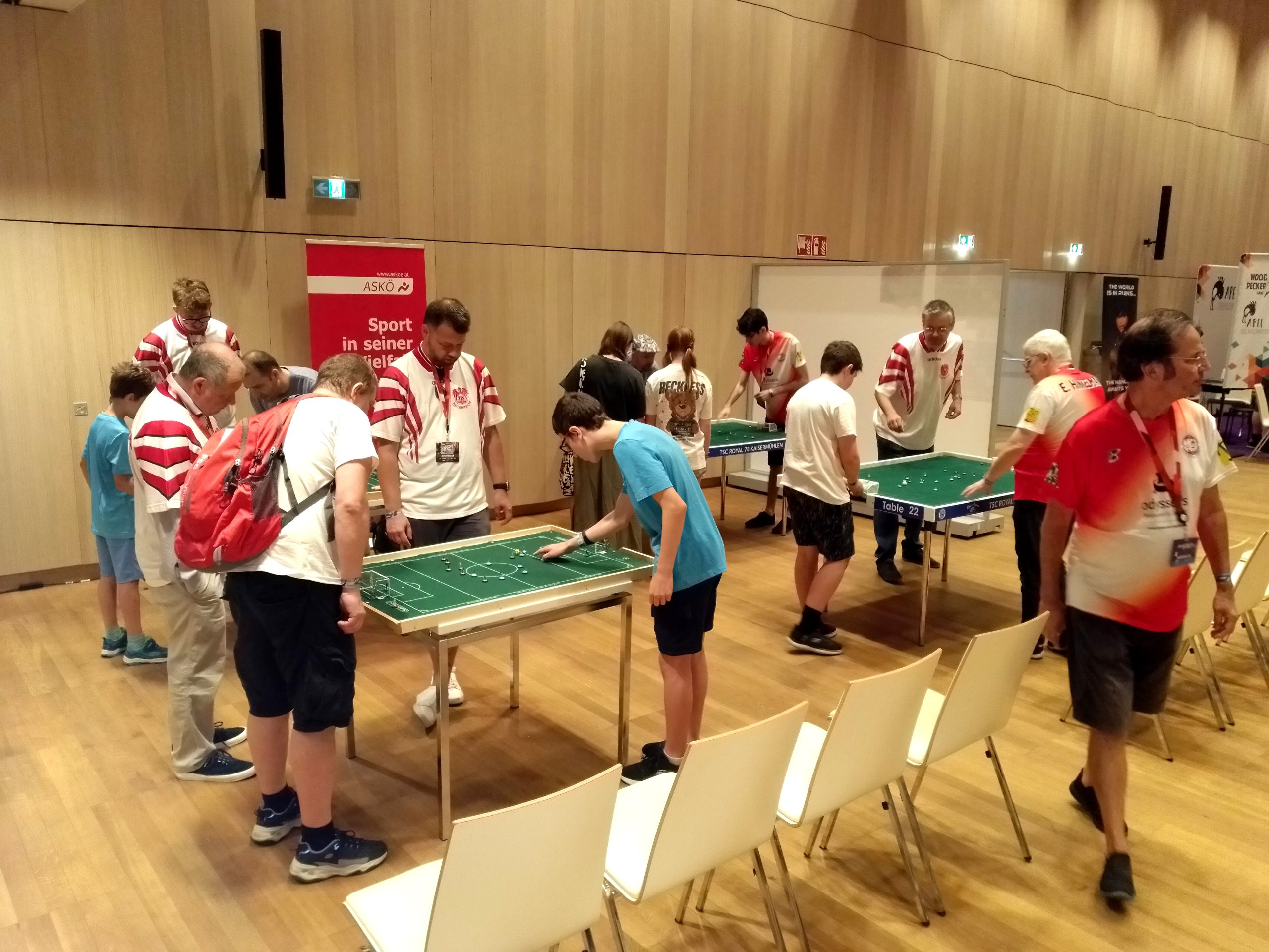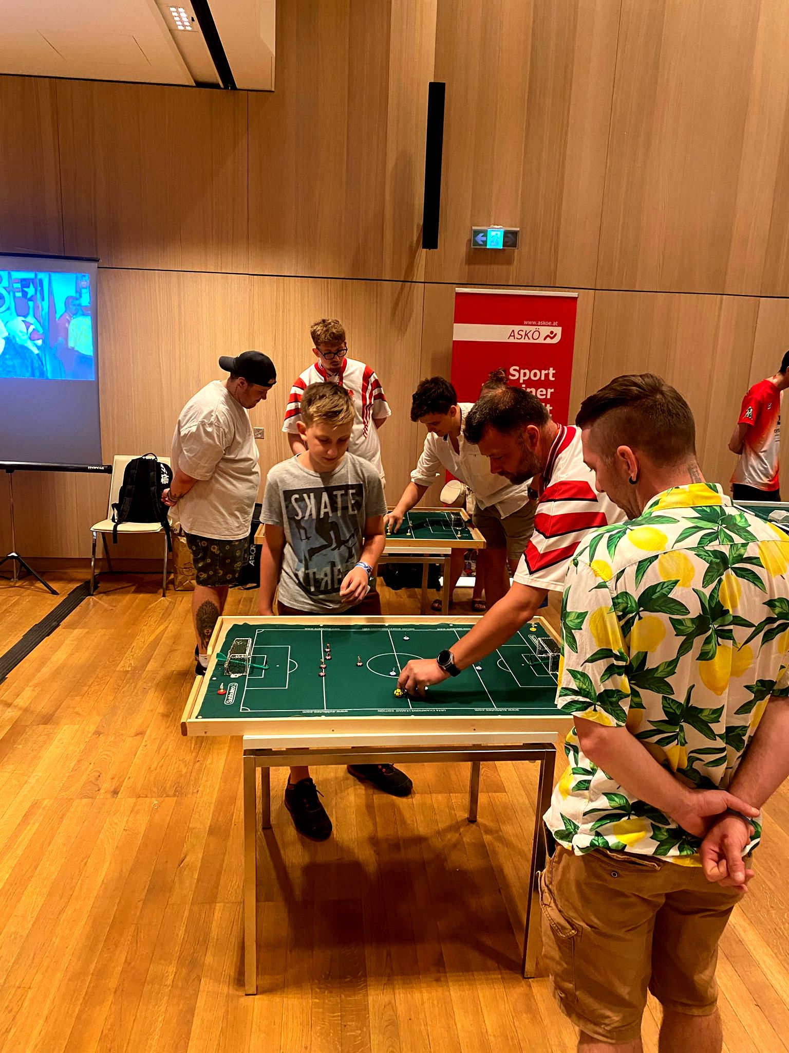 Trotz vieler Kiiiiiiiiids kann man getrost schreiben: „Kids love Sports Table Football“. (Übersetzung: Jugendliche lieben Sport-Tischfußball). Gerhard lachte amüsant als beim Essen ein Tisch umgeworfen wurde und die anderen 94 Jugendlichen sehr laut zum Klatschen begannen. Die Halle tobte, die Stimmung war exzellent, das Essen bestens und die Organisatoren rund um das Team von Markus Hirtl (Obmann SCUPF) hatten Geniales für die 95 Jugendlichen Vollbracht. Der EÖTV und seine Vereine gratulieren dazu herzlichst.