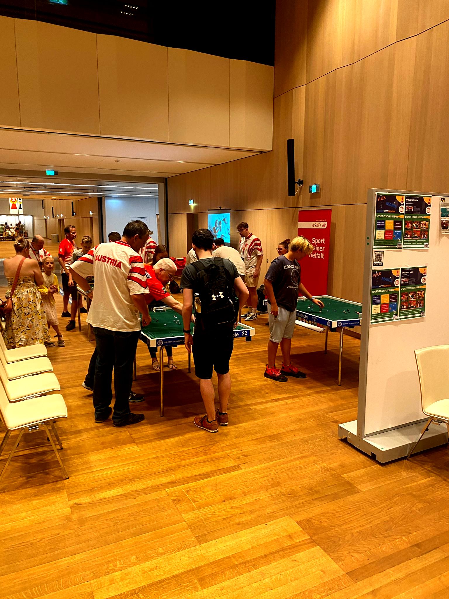 Der EÖTV mit seinen EÖTV Angels war bestens gerüstet und engagiert beim Erklären unseres großartigen Sportes. Jeder Besucher erfreute sich was er zu sehen bekam. Mütter und Väter waren angetan was sie sahen. Pädagogen die unseren tand besuchten waren begeistert vom Schnippen der kleinen Kunststoff Figuren. Der grüne Spielbelag war für viele sehr anziehend.