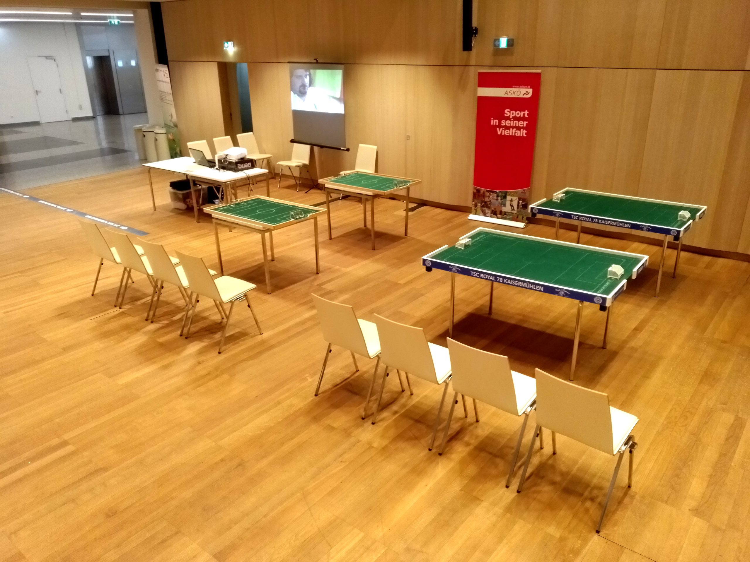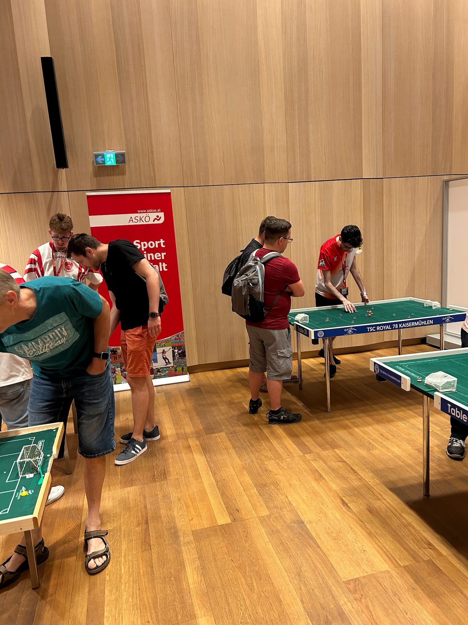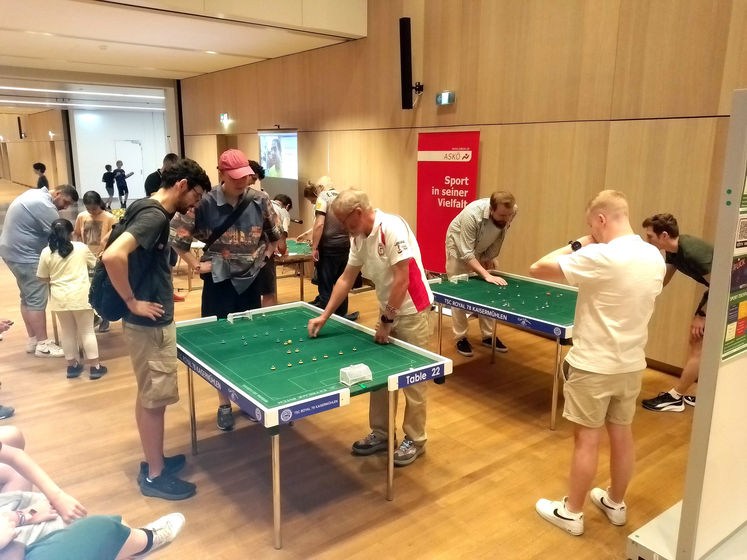 - Wir bedanken uns bei Horst Deimel, Gerhard Ecker, Heinz Eder, Alexander Haas, Alfred Strommer, Marios Strommer, Murat Tünger und Daniel Vranovitz für die erbrachten Leistungen beim Spielefest Wien 2024. Natürlich hoffen wir, dass ihr alle wieder dabei seid. Doch das war 2024 fast schon zu wenig und wenn wir diesmal mit 2 Stück ¾-Platten für U12 und 2 regulären Platten für die Größeren antreten wollen, braucht es noch deutlich mehr Unterstützung!