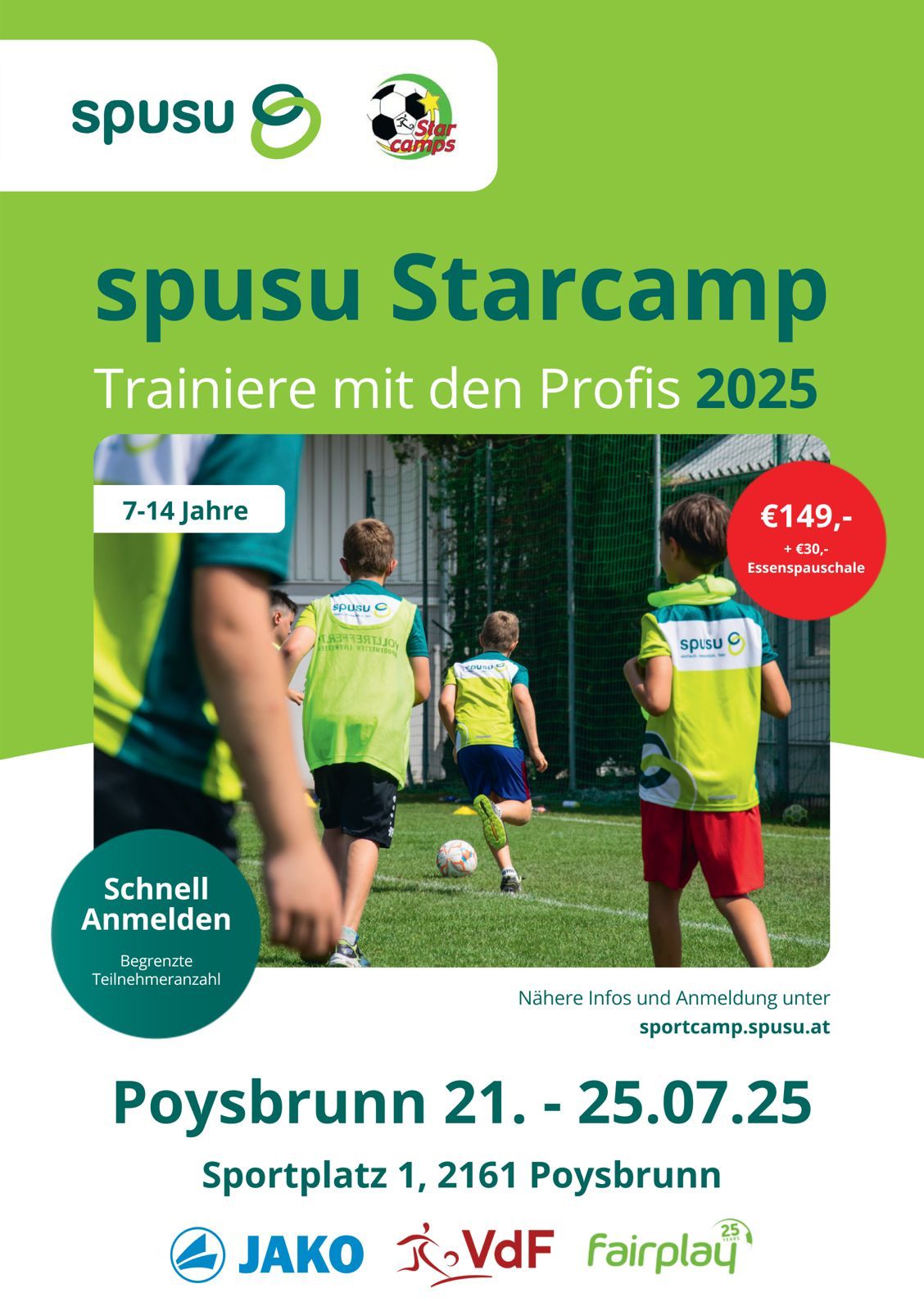 Der Tag 2025.07.24. Zu Beginn ein super Danke schön an Gerhard Ecker der in der „Kids-Hölle“ (Humor) beim SCU Poysbrunn/Falkenstein Fußball „StarsCamp“ mit seiner eisernen ‚Golf-Spieler-Teamkapitän‘ Eigenschaft den Tag bestens mit Horst Deimel routiniert durch den Tag brachte. Wir hatten unseren riesen Spaß, die Jugendlichen ebenfalls ohne Zweifel.